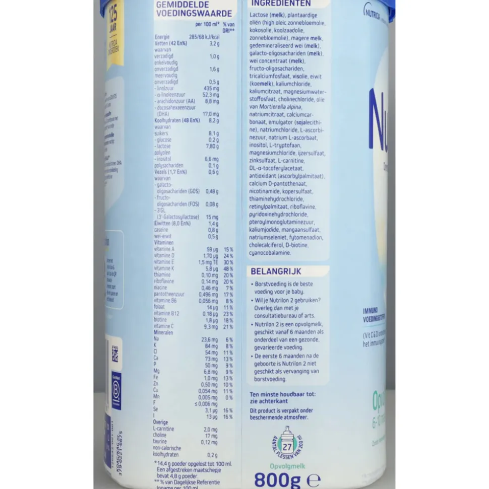 Nutrilon Standaard 2 met Pronutra bevat onze gepatenteerde mix van de prebiotische vezels GOS:lcFOS en de vitamines A, C en D. Deze vitamines ondersteunen de normale werking van het immuunsysteem. Ook bevat het omega-3-vetzuren, zoals ALA. ALA draagt bij aan de ontwikkeling van de hersenen. De experts van Nutrilon doen al meer dan 100 jaar onderzoek naar babyvoeding. We vernieuwen onze producten voortdurend. Zo zorgen we ervoor dat ze optimaal blijven aansluiten bij de voedingsbehoefte van je kindje. Onze laatste ontwikkeling is Nutrilon met Pronutra.