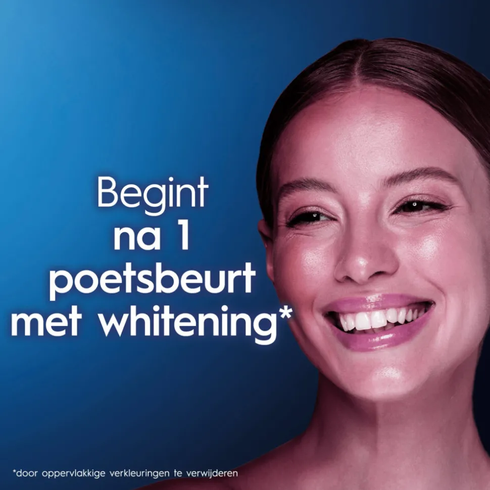 - Begint met whitening na 1 poetsbeurt