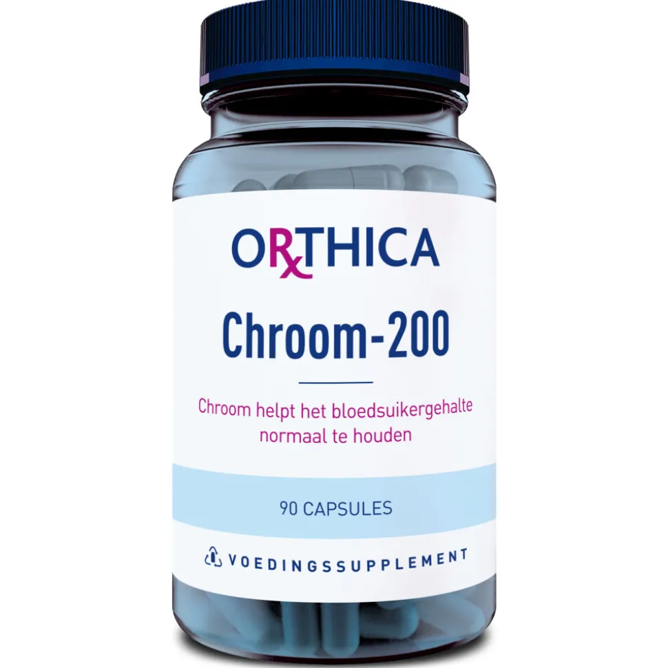 Orthica Chroom 2000 is een mineralenpreparaat met een krachtige dosering Chroom. Chroom-200 bevat chroompicolinaat, een organisch gebonden vorm van chroom en helpt om het bloedsuikergehalte normaal te houden.
