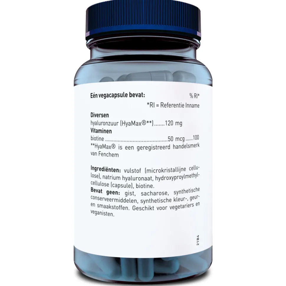 Eén vegacapsule bevat: Diversen hyaluronzuur (HyaMax®**) 120 mg Vitaminen biotine 50 mg **HyaMax® is een geregistreerd handelsmerk van Fenchem