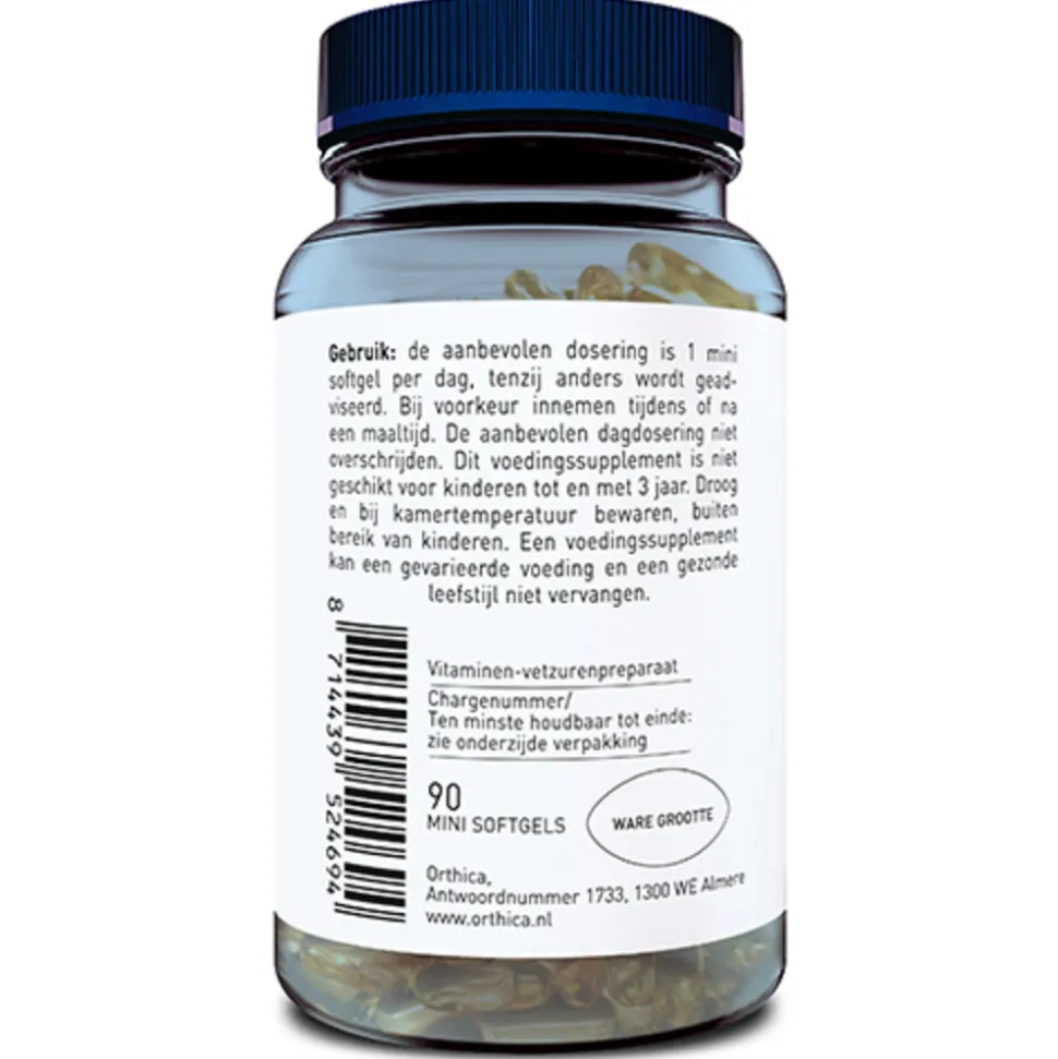 De aanbevolen dosering is 1 mini softgel per dag, tenzij anders wordt geadviseerd. Bij voorkeur innemen tijdens of na een maaltijd. De aanbevolen dagdosering niet overschrijden.