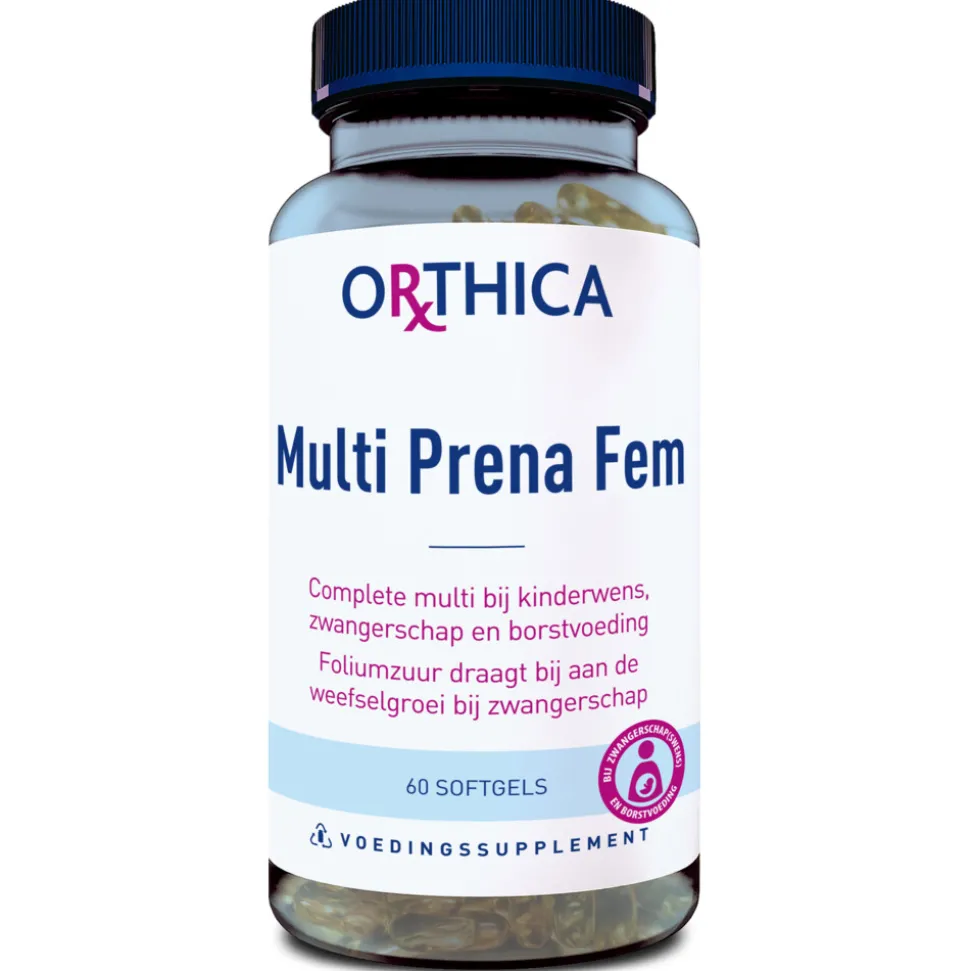 Multi Prena Fem is een complete multivitamine voor vrouwen met een zwangerschapswens, vrouwen die zwanger zijn én vrouwen die borstvoeding geven. Naast alle belangrijke vitaminen, waaronder vitamine D en foliumzuur, en mineralen, bevat Multi Prena Fem 400 mg van het omega 3-vetzuur DHA.