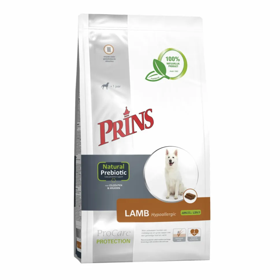 Prins ProCare Protection Lam Hondenvoer is een geperste voeding voor volwassen honden van (middel)grote rassen met een gevoelige huid en vacht. Deze volledige voeding bevat één eiwitbron, wat de kans op een overgevoeligheidsreactie vermindert. Ingrediënten als zalmolie, FOS, kruidenextracten en Schüssler celzouten dragen daarnaast bij aan een gezonde hartfunctie, soepele gewrichten en een gezonde huid en glanzende vacht.