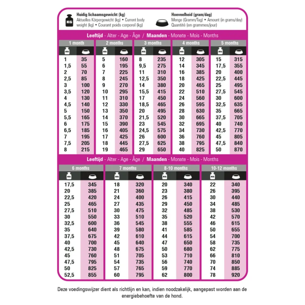 - Hoog vetgehalte voor jonge honden. Bevat een verhoogd vetgehalte om aan de behoefte van jonge honden te voldoen, L-carnitine bevordert een optimale vetverbranding.
