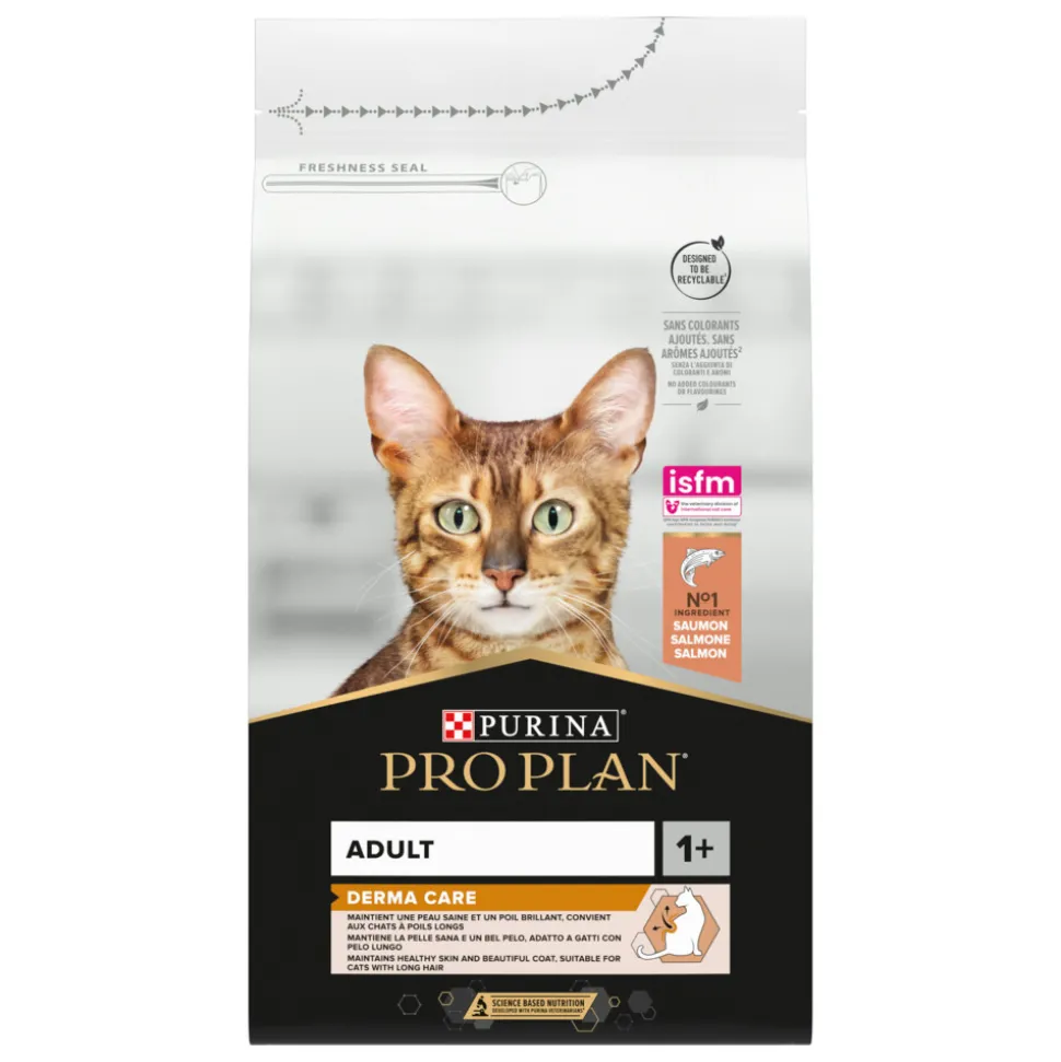 Veel katten – vooral katten met langer haar – zijn meer vatbaar voor een gevoelige huid en voor haarballen. Pro Plan Adult Elegant Derma Care Zalm met Derma Care is ontwikkeld door dierenartsen en wetenschappers om te helpen. Het dieet bevat Derma Care, een voedingsmix dat heeft bewezen te helpen bij het behouden van een gezonde huid en een mooie vacht.