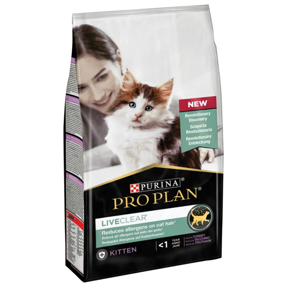 Pro Plan LiveClear kittenvoer is een smakelijke, 100% complete en evenwichtige premium dagelijkse voeding die de hoeveelheid allergenen op haar en huidschilfers van katten na drie weken dagelijks voeren veilig en effectief vermindert.