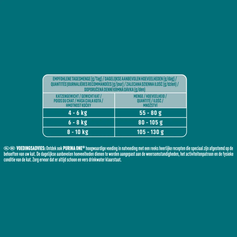 Purina ONE Sterilcat met Bifensis is geformuleerd met een aangepast voedingsstoffenprofiel voor gecastreerde en gesteriliseerde katten. De exclusieve formule heeft aangepaste eiwit- en vetwaarden om de stofwisseling van jouw gesteriliseerde kat gezond te helpen houden. Het helpt spiermassa op te bouwen en het gewicht van je kat onder controle te houden. Ook helpt de formule, met uitgebalanceerde mineralen, haar urinewegen gezond te helpen houden.