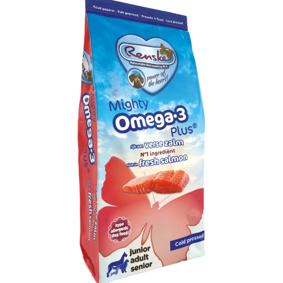 Renske Mighty Omega-3 Plus Geperst Zalm is een complete, geperste voeding voor volwassen honden van alle rassen. Deze maaltijd bevat zalm als belangrijkste eiwitbron, rijk aan omega-3-vetzuren, die bijdragen aan een gezonde huid, een glanzende vacht en een sterk immuunsysteem. De geperste brok zorgt voor een hoge verteerbaarheid en behoudt de voedingsstoffen optimaal, waardoor het ideaal is voor honden met een gevoelige spijsvertering. Deze zorgvuldig samengestelde voeding ondersteunt daarnaast de gewrichten, hersenfunctie en het cardiovasculaire systeem van jouw hond. Renske Mighty Omega-3 Plus Geperst Zalm is 100% natuurlijk en vrij van kunstmatige geur-, kleur- en smaakstoffen.