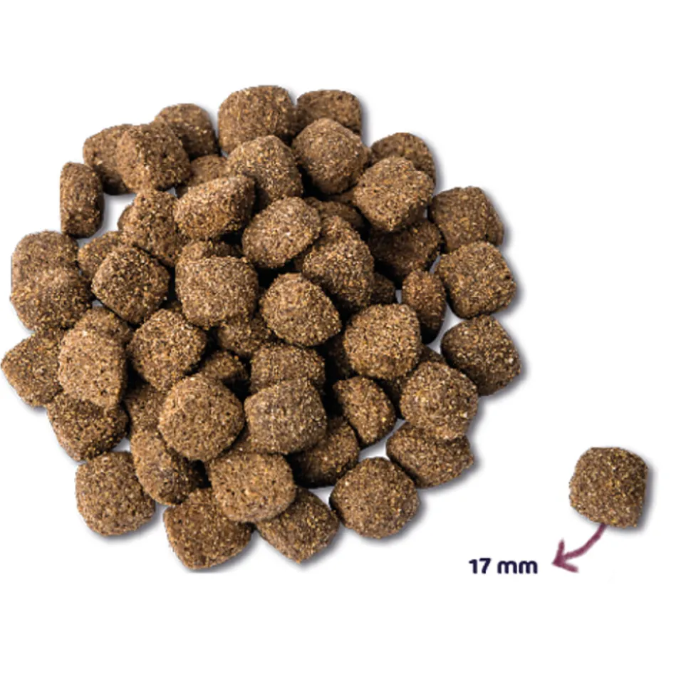 Let op; niet geschikt voor zeer kleine honden vanwege het formaat van de brok.