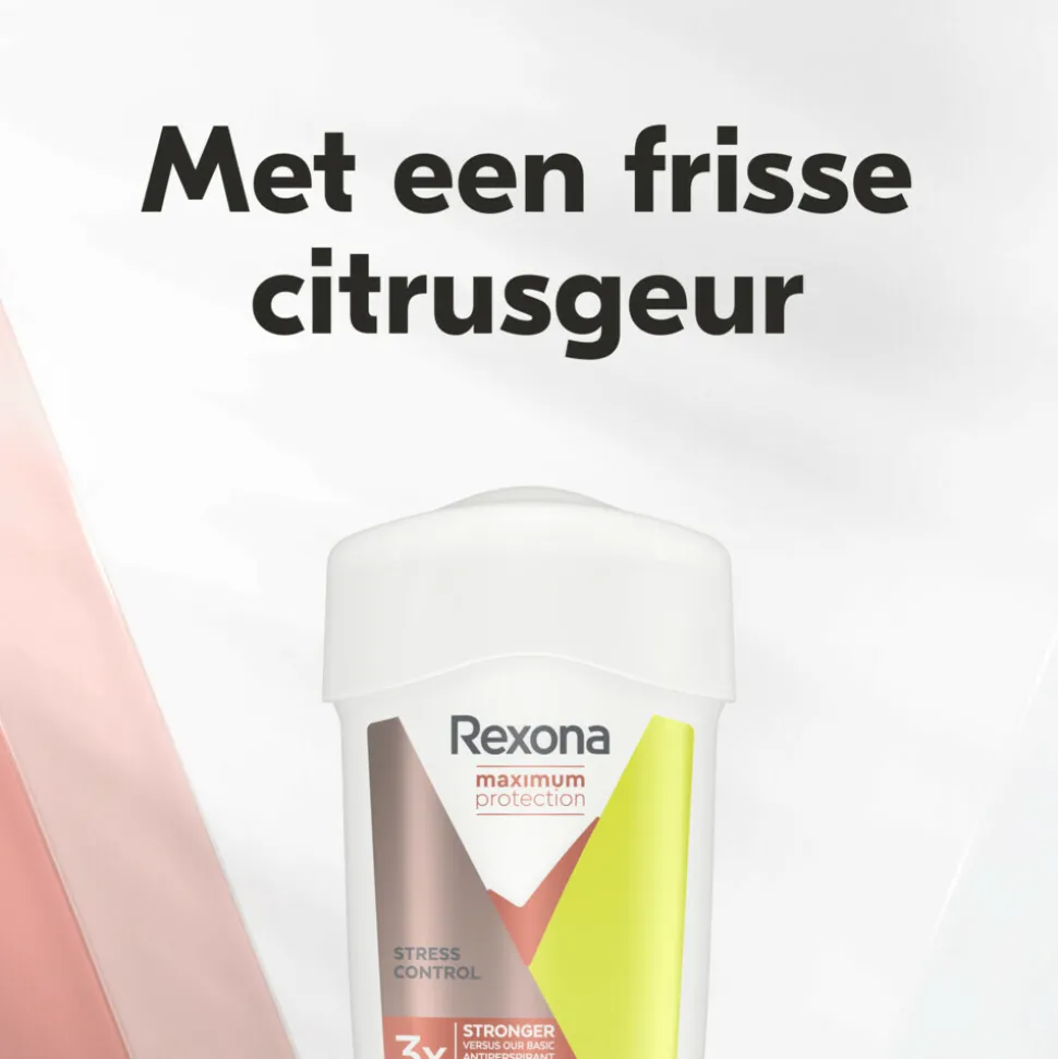 Rexona Women Maximum Protection Stress Control Anti-Transpirant Crème Stick voor tot 96 uur krachtige bescherming tegen zweet en lichaamsgeur.
