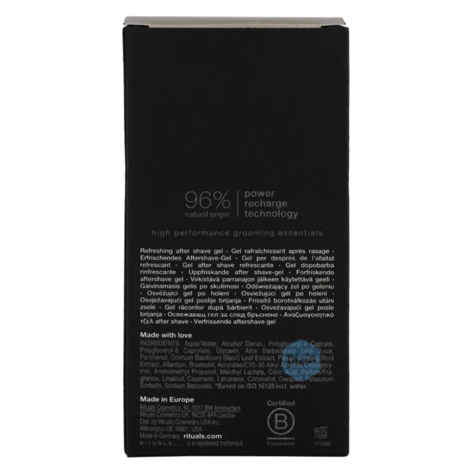 De Rituals Homme After Shave Refreshing Gel is speciaal ontwikkeld voor mannen die hun huid na het scheren willen verzorgen en verfrissen. De lichte geltextuur trekt snel in en kalmeert de huid direct, terwijl de verfrissende geur zorgt voor een energieke start van de dag. De formule bevat natuurlijke ingrediënten zoals aloë vera en menthol, die de huid hydrateren en verkoelen.