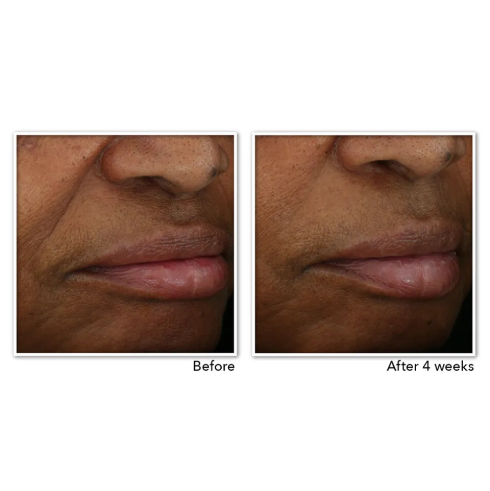 - In 4 weken: 100% had een vermindering van lijntjes en rimpels. 100% had een helderdere, strakkere huid.
