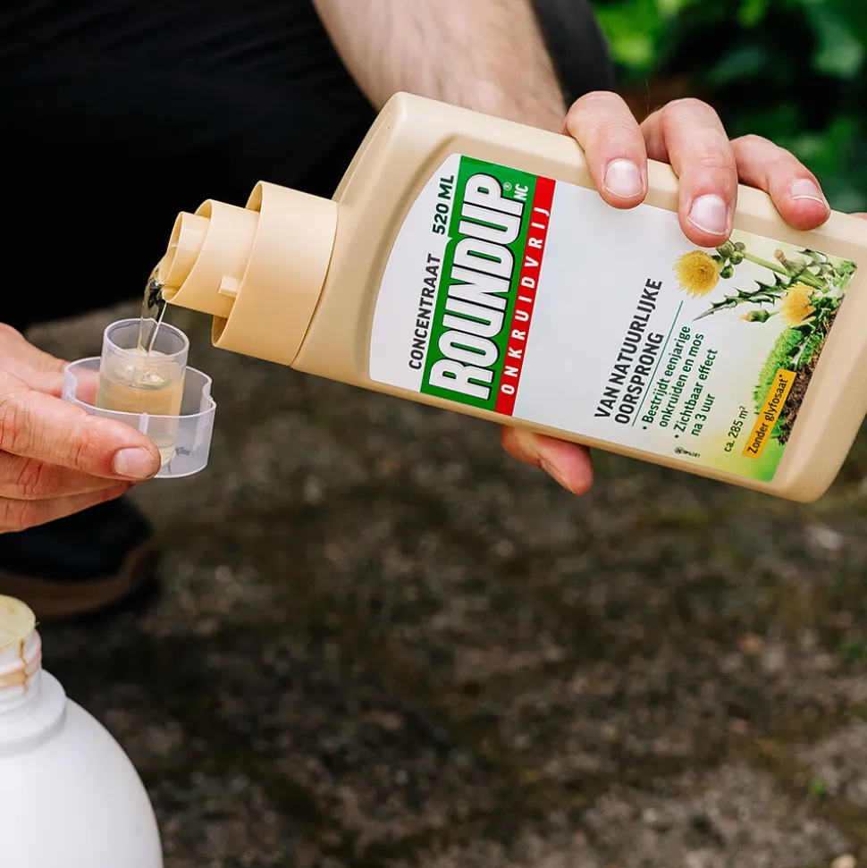 Roundup® NC Natuurlijk Onkruidvrij Onkruidverdelger Concentraat 140ml is een snelwerkende onkruidverdelger van natuurlijke oorsprong. De werkzame stof in deze Roundup® onkruidbestrijder is een grondstof die voorkomt in de natuur. Roundup® NC is snel biologisch afbreekbaar in de bodem. Het middel bestrijdt alle bovengrondse delen van het onkruid. De eerste effecten zijn zichtbaar binnen 3 uur. Omdat Roundup® NC alleen op basis van bladcontact werkt, kan het product niet preventief worden gebruikt op oppervlakken zonder onkruiden en het vermindert de kieming van zaden niet. Geschikt voor het bestrijden van onkruiden tussen sierbeplanting. Kan gebruikt worden in de moestuin, voor opkomst van het gewas.