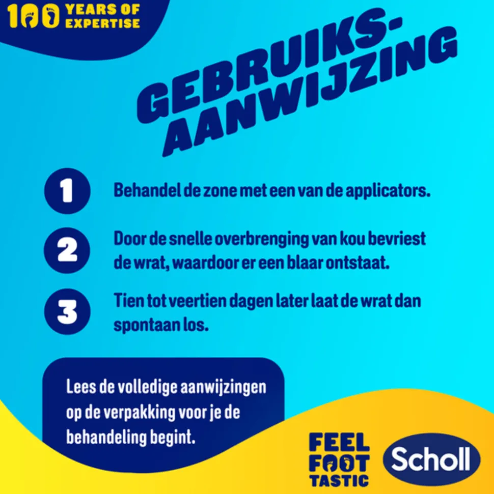 - Werkt door het snel bevriezen van de kern van de wrat en na het aanbrengen wordt een blaar gevormd.