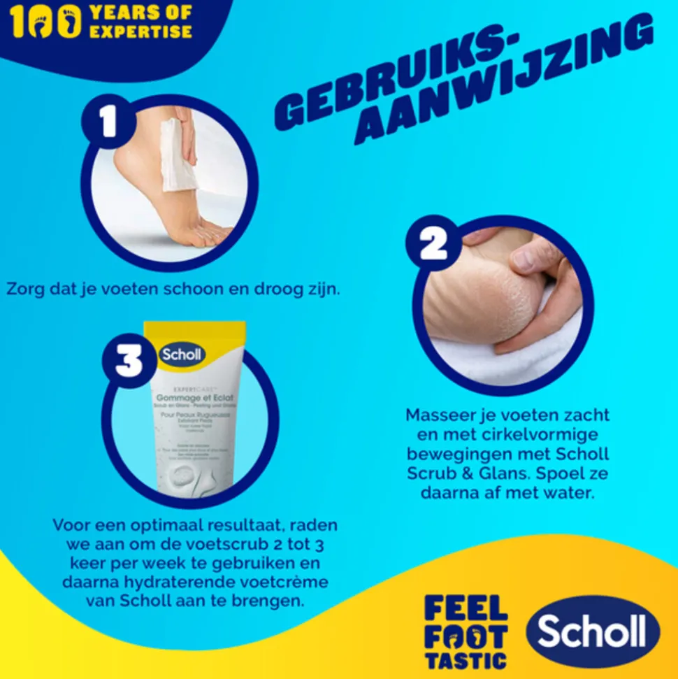 - Voor de beste resultaten: gebruik 2 à 3 keer per week, gevolgd door de Verzachtende Hydraterende Crème van Scholl.