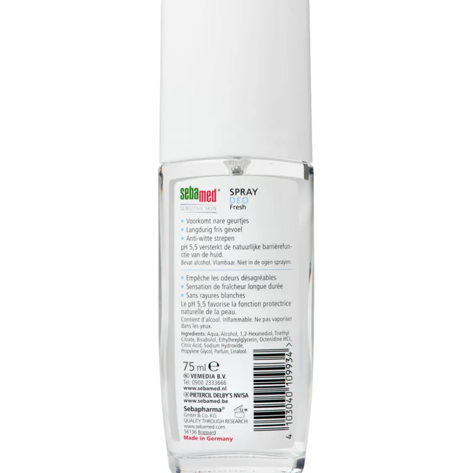 Sebamed Deodorant Spray Neutral stopt de zweet producerende bacteriën zonder de natuurlijke werking van de zweetklieren te onderdrukken. De actieve biologische ingrediënten geven langdurige frisheid en beschermen de gevoelige huid. De pH waarde van 5,5 versterkt de weerstand van de huid, waardoor de kans op irritatie, infectie en allergie vermindert. Bovendien bevat Sebamed Deo spray huidvriendelijke geurstoffen, zonder aluminium bestanddelen.