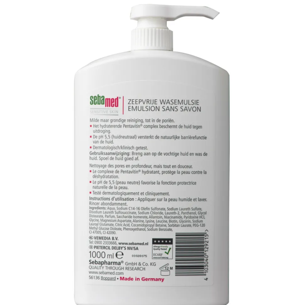 Sebamed Zeepvrije Wasemulsie is speciaal ontwikkeld voor het dagelijks wassen van handen, gezicht én lichaam. Dus ook perfect voor onder de douche. En door het pompje gemakkelijk in gebruik. Ideaal om de dag fris te beginnen, fijn voor tussendoor en heerlijk om de dag mee te eindigen. De milde, wasactieve bestanddelen in de Zeepvrije Wasemulsie reinigen de huid zeer grondig, terwijl Pentavitin de huid beschermt tegen uitdroging. De huid voelt merkbaar zacht en soepel aan. De huidneutrale pH-waarde van 5,5 versterkt de natuurlijke beschermingslaag van de huid. Zo blijft de huid gezond en in topconditie. Ontwikkelt door en met dermatologen.
