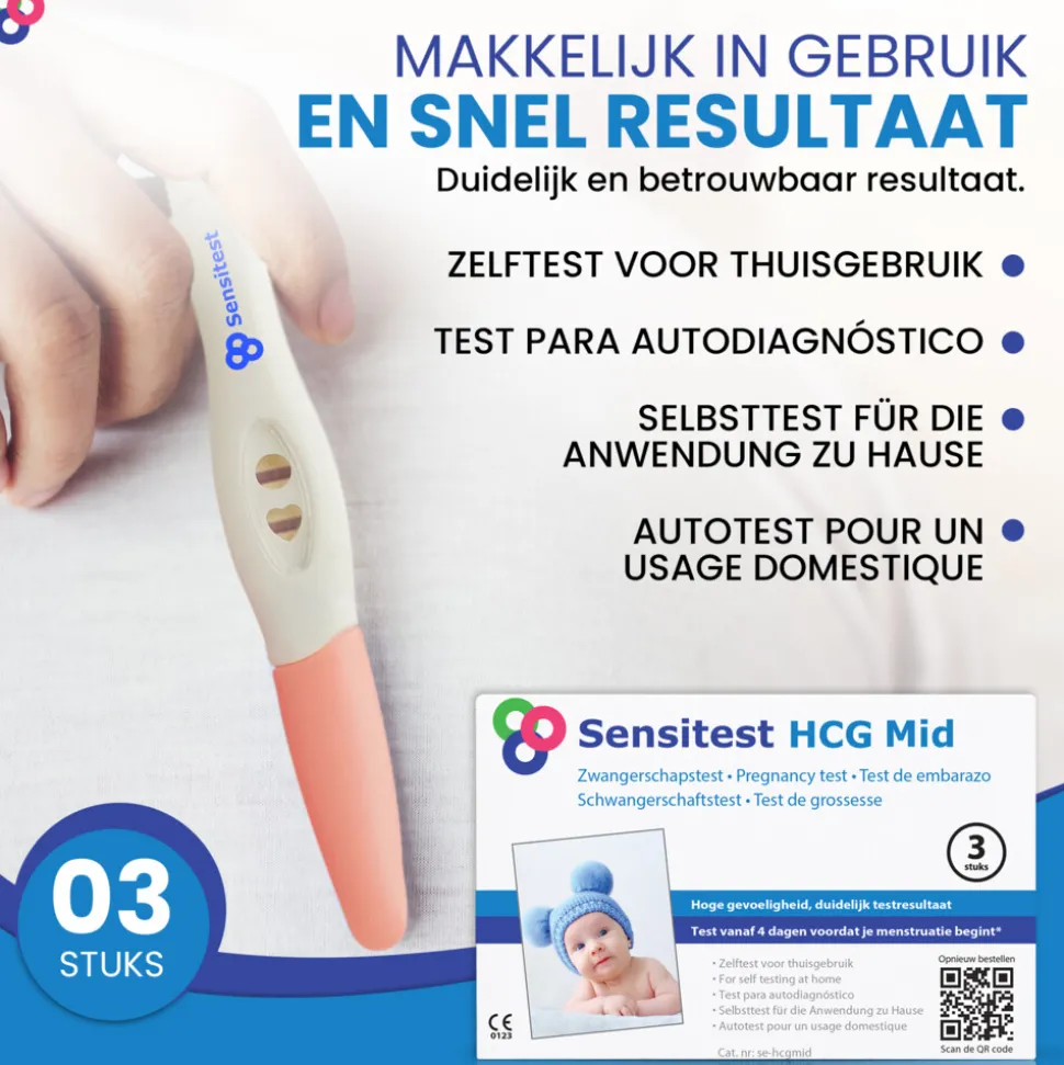 Dit is de extra vroege Sensitest zwangerschapstest. Je kunt 4 dagen eerder testen dan normale zwangerschapstesten, en toch krijg je een betrouwbare testuitslag. Dit is de zwangerschapstest met het hartje. De midstream is een praktische en betrouwbare test voor het vaststellen van een zwangerschap. Veel gebruikt in ziekenhuizen, zwangerschapsklinieken en door huisartsen. De zwangerschapstest is praktisch omdat je de tip even in de urinestraal houdt en binnen 5 minuten het testresultaat kunt aflezen. De test is betrouwbaar omdat de juiste hoeveelheid urine automatisch wordt gedoseerd door de vorm van de test. Deze zwangerschapstest heeft een zeer hoge gevoeligheid.