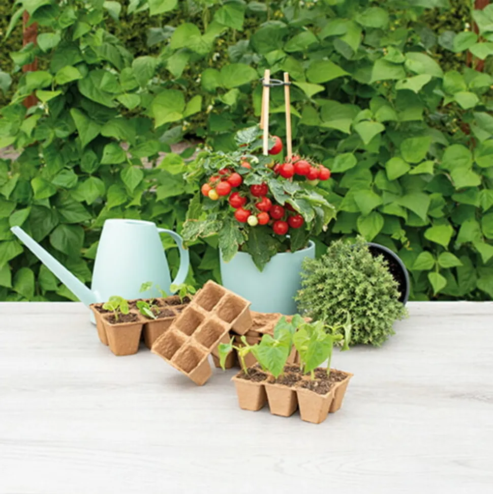 Deze potjes gemaakt van houtpulp zijn heel handig om iets in te zaaien of stekken. Verspenen is verleden tijd! Deze potjes zet je namelijk met pot en al direct in de aarde. Het potje lost op in de aarde en de wortels kunnen er makkelijk doorheen groeien, zo krijg je sterke en gezonde planten.