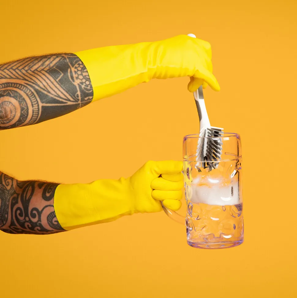 De Sorbo Smartbrush is in alle opzichten een unieke afwasborstel. Door de ergonomische en soft touch handgreep ligt de borstel fijn in de hand. Het rechte ontwerp zorgt ervoor dat het glaswerk makkelijk te reinigen is. Door deze typische vorm blijft de afwasborstel tevens drijven en zinkt niet naar de bodem. Dankzij de perfect gepositioneerde vuilschraper op de kop is de borstel zelfs geschikt voor het losmaken van aangekoekte resten.