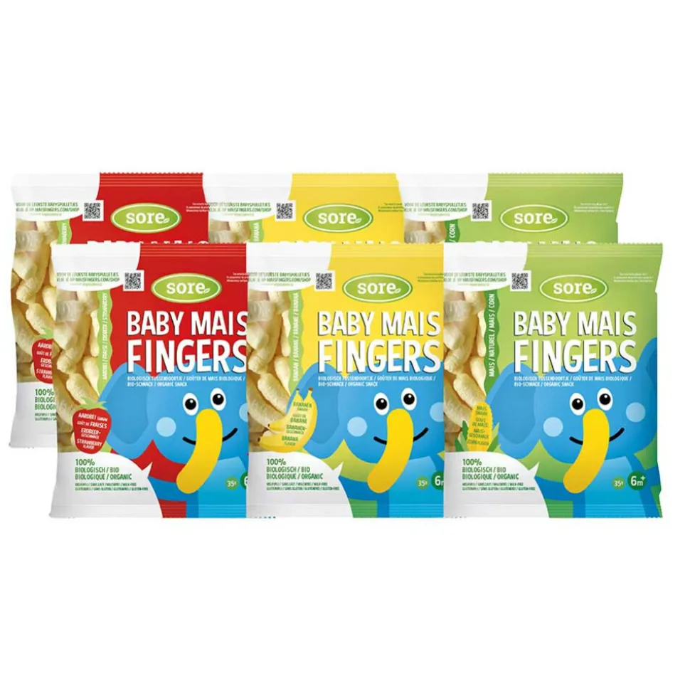 Met dit voordeel pakket van Sore haal je lekkere snacks in huis. Sore Baby Maisfingers zijn een uitstekend tussendoortje voor kinderen vanaf 6 maanden. Deze sticks zijn makkelijk te pakken, zijn gemaakt van biologische maisbloem en smelten weg in de mond.