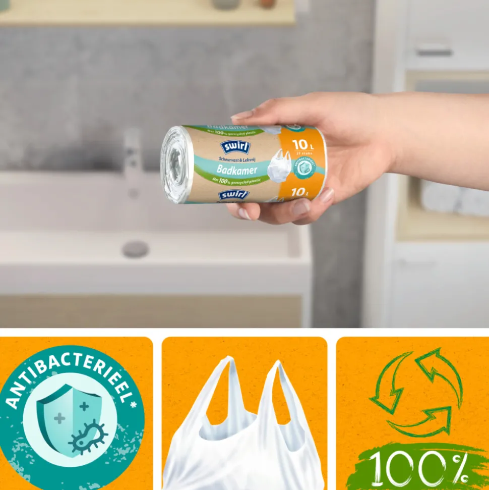De Swirl pedaalemmerzakken van 10 liter zijn speciaal ontworpen voor gebruik in de badkamer. Dankzij de handige handvatten kun je de zak gemakkelijk verwijderen en afsluiten, waardoor je badkamer altijd schoon en fris blijft.