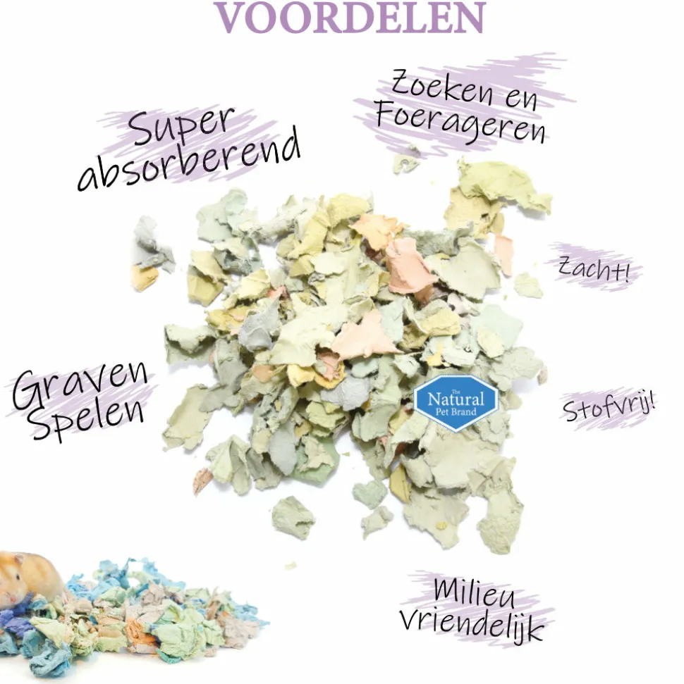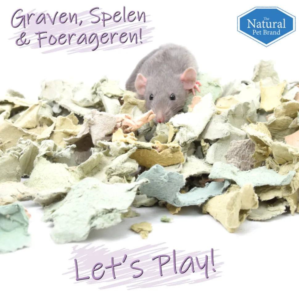 Card N Egg is een unieke bodembedekking gemaakt van zachte stukjes eierdozen, ontworpen als toplaag voor een basisbedekking zoals Cotton N Cotton, Cotton N Fibre, Cotton N Hemp of Cotton N Flax. Deze speciale mix biedt een comfortabele, frisse en stimulerende leefomgeving voor knaagdieren, konijnen en vogels. Dankzij het uitstekende absorptievermogen wordt vocht snel opgenomen, waardoor de bodembedekking droog en geurvrij blijft. De structuur van Card N Egg bevordert natuurlijk gedrag zoals graven, spelen en foerageren, wat essentieel is voor de geestelijke en lichamelijke gezondheid van jouw huisdieren.
