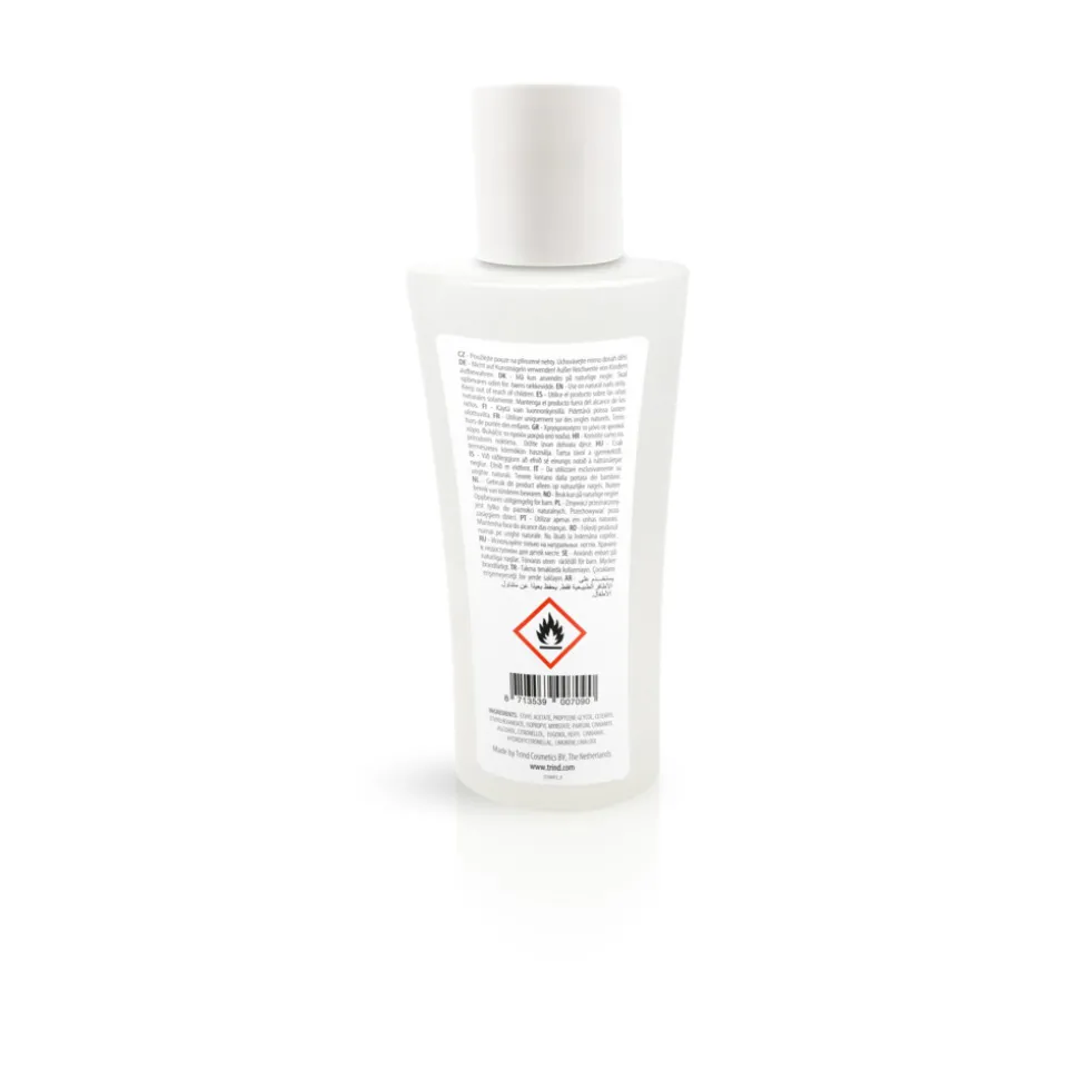 Trind Nailpolish Remover verwijdert nagellak snel en moeiteloos. De remover is speciaal ontwikkeld voor natuurlijke nagels en is vrij van aceton. Hierdoor beschadigt en droogt het de nagels niet uit. De nagellak remover verwijdert nagellak op een milde en effectieve manier. Deze remover is geschikt voor alle soorten nagellak, inclusief de meest hardnekkige nagellak met glitters.