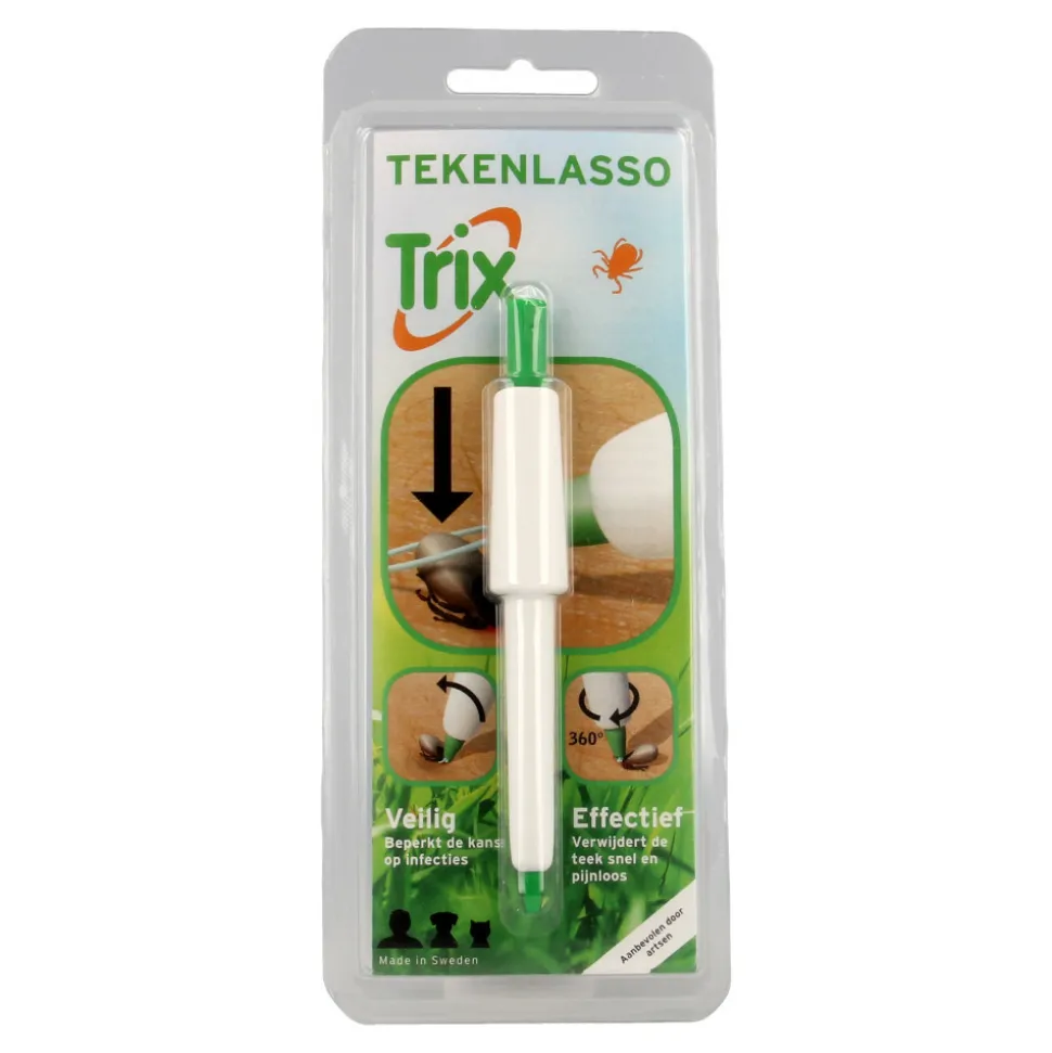 Trix tekenlasso pincet is speciaal voor het verwijderen van teken bij mens en dier. De pincet werkt veilig en snel. De teek wordt gemakkelijk en pijnloos verwijdert. Trix Lassopincet verwijdert zelfs de kleinste teekjes door het unieke lasso systeem.