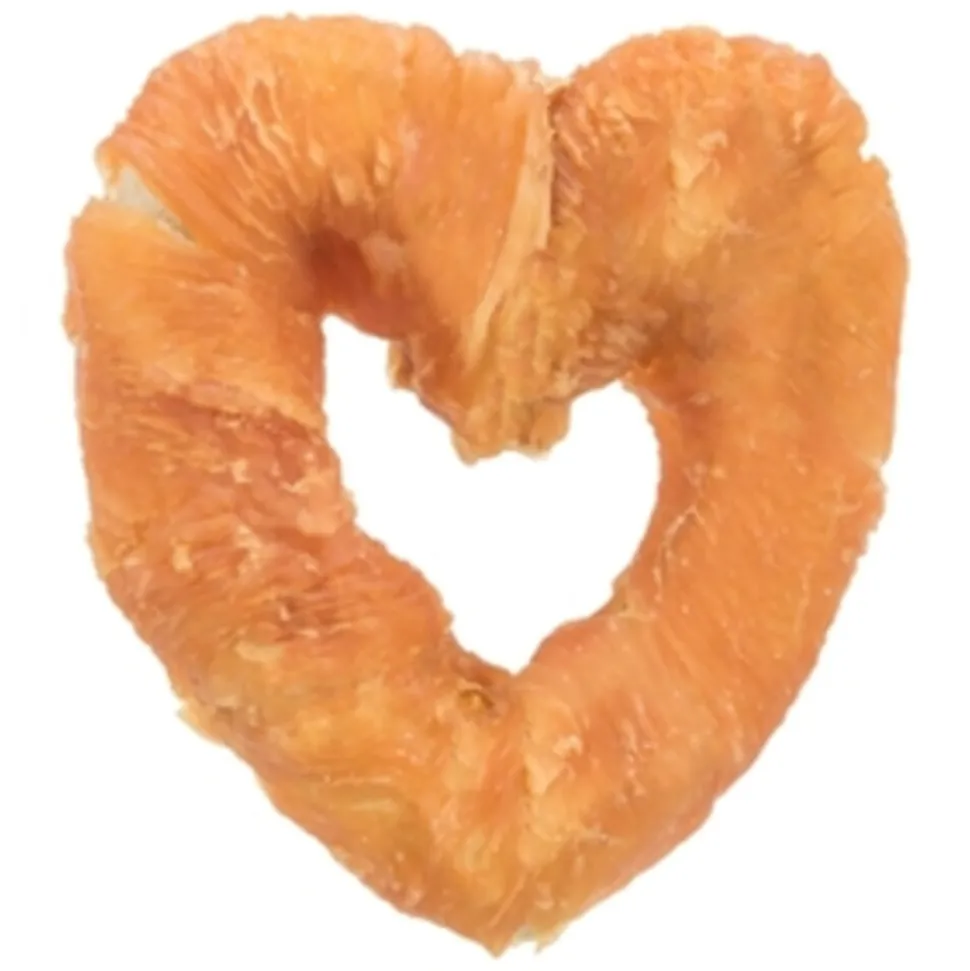 De Trixie Denta Fun Chicken Heart in 70 gram is aanvullend diervoer voor de hond. Het is een smakelijke kauwsnack gemaakt van runderhuid met kip. Deze leuke, hartvormige snacks zijn niet alleen ontzettend lekker, maar ook nog eens goed voor de hond. Kauwen op runderhuid gaat verveling tegen én helpt bij het verzorgen van het gebit: door de wrijving van de runderhuid langs de tanden worden bacteriën en daardoor tandplak verminderd. Deze uitvoering is extra lekker door het jasje van kip! De Denta Fun Hearts zijn gemaakt zonder toegevoegde suikers en gluten.