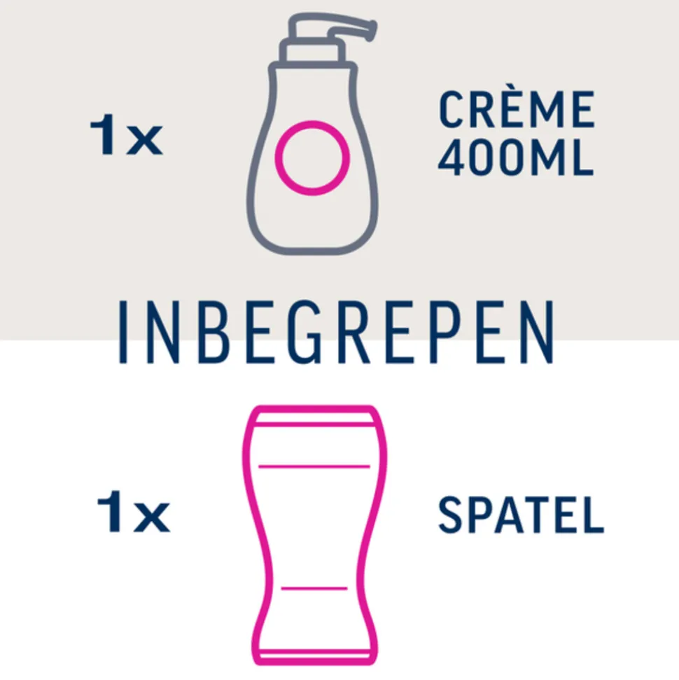 In de grotere pompverpakking met 400 ml zit alles wat je nodig hebt (inclusief spatel). En iedere pompflacon bevat genoeg crème voor ongeveer vier behandelingen! Zo’n volledig, perfect pakket kom je niet vaak tegen, dus haal snel deze ultieme badkameraccessoire in huis! Met vochtinbrengend complex. Gevoelige meiden hebben ook recht op dat zachte, sexy gevoel.