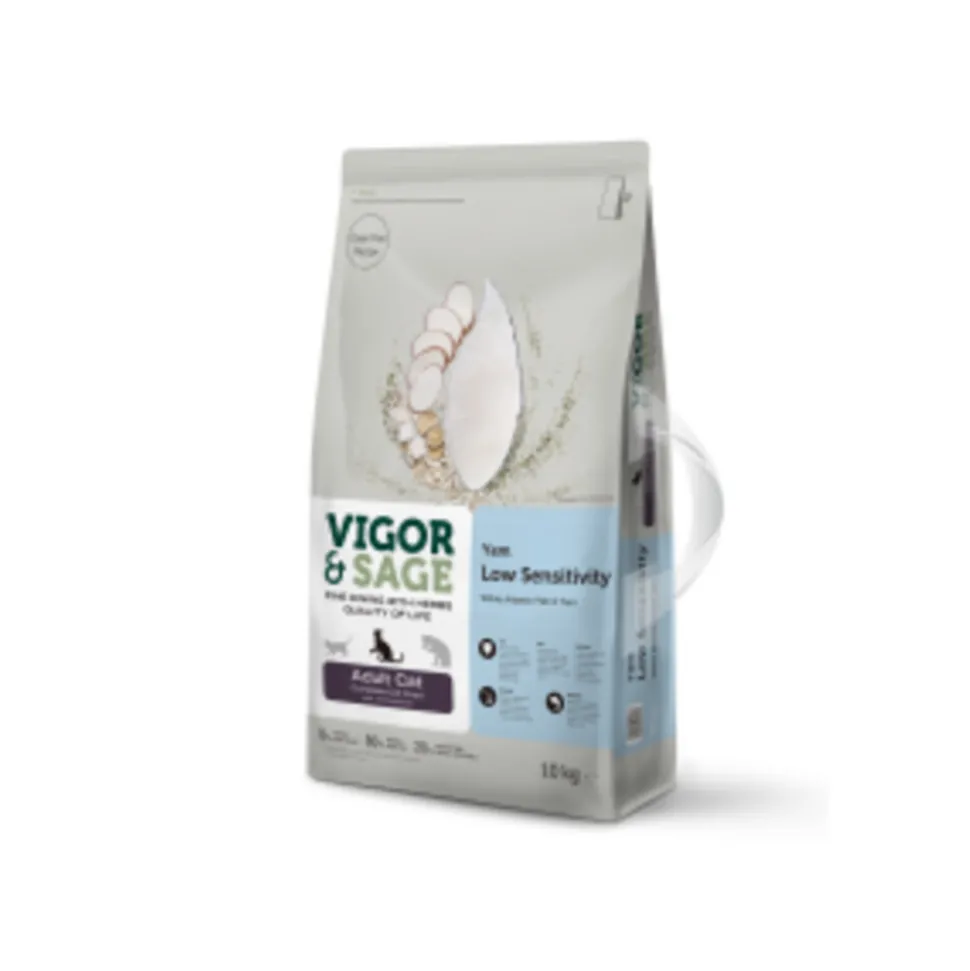 Vigor & Sage Kat Adult Low Sensitivity Yam in een royale verpakking van 10 kg is een voedzame keuze voor volwassen katten met een gevoelige spijsvertering. Deze voeding is verrijkt met yam, wat de gevoeligheid van de kat helpt te verminderen. Vigor & Sage heeft aandacht besteed aan de kwaliteit van de ingrediënten om te zorgen voor de gezondheid en het welzijn van jouw kat.