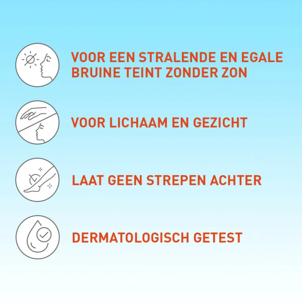 - Dagelijks gebruiken tot de gewenste teint is bereikt. Daarna 2 tot 3 keer per week herhalen.