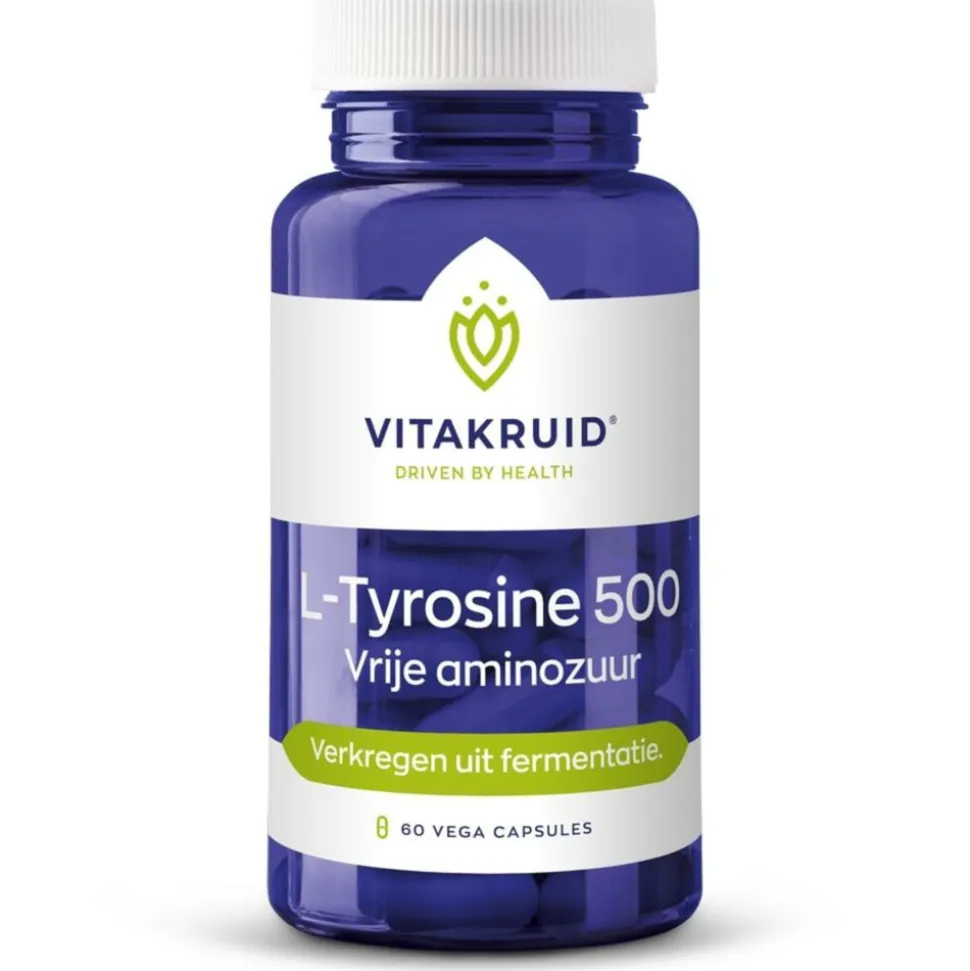 Vitakruid L-Tyrosine 500 is een voedingssupplement dat het vrije en semi-essentiële aminozuur L-tyrosine bevat. Tyrosine is van belang bij de vorming van neurotransmitters. Daarnaast is het essentieel voor de opbouw van het schildklierhormoon en adrenaline.