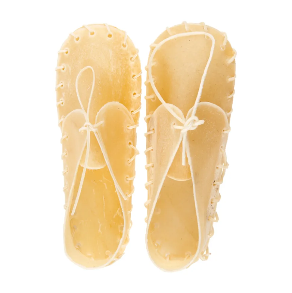 Smakelijke schoentjes! Deze leuke schoentjes zijn gemaakt van gedroogde runderhuid. Ze zien er niet alleen leuk uit maar geven jouw kleine viervoeter ook urenlang kauwplezier.