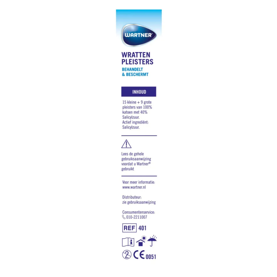 Medisch hulpmiddel Wartner Wrattenpleisters maken het gemakkelijk om thuis gewone wratten (verruca vulgaris) en voetwratten (verruca plantaris) te verwijderen. Wartner Wrattenpleisters zijneffectief en gemakkelijke zonder geknoei en altijd optimaal huid contact.