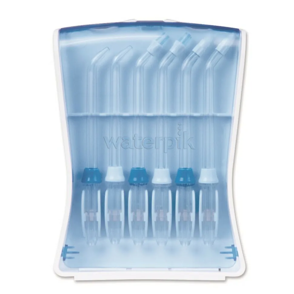 Een set van de populairste Waterpik Waterflossertips in een handig, hygiënisch, stevig bewaaretui.