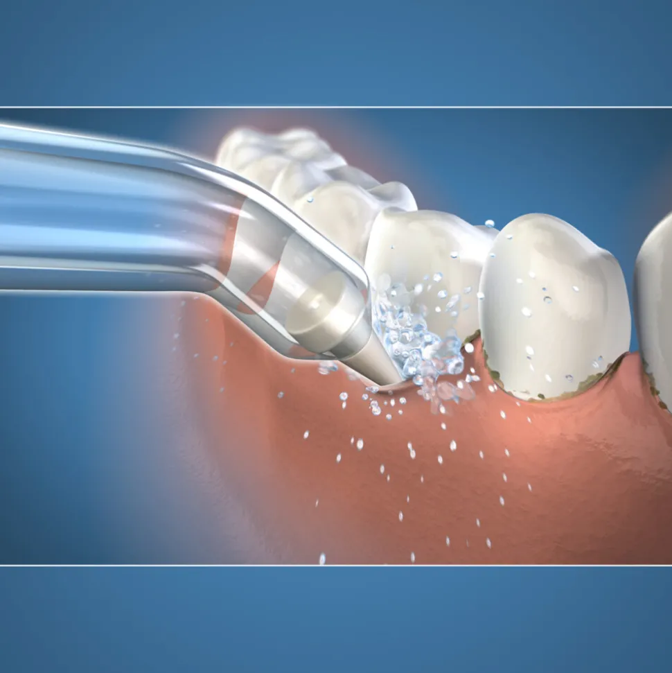 Voor parodontale pockets en furcaties. Een zachtrubberen tip voor een zachte, therapeutische spoeling met lage druk onder de tandvleesrand. Klinisch bewezen dat je 90% van een pocket van 6 mm bereikt.
