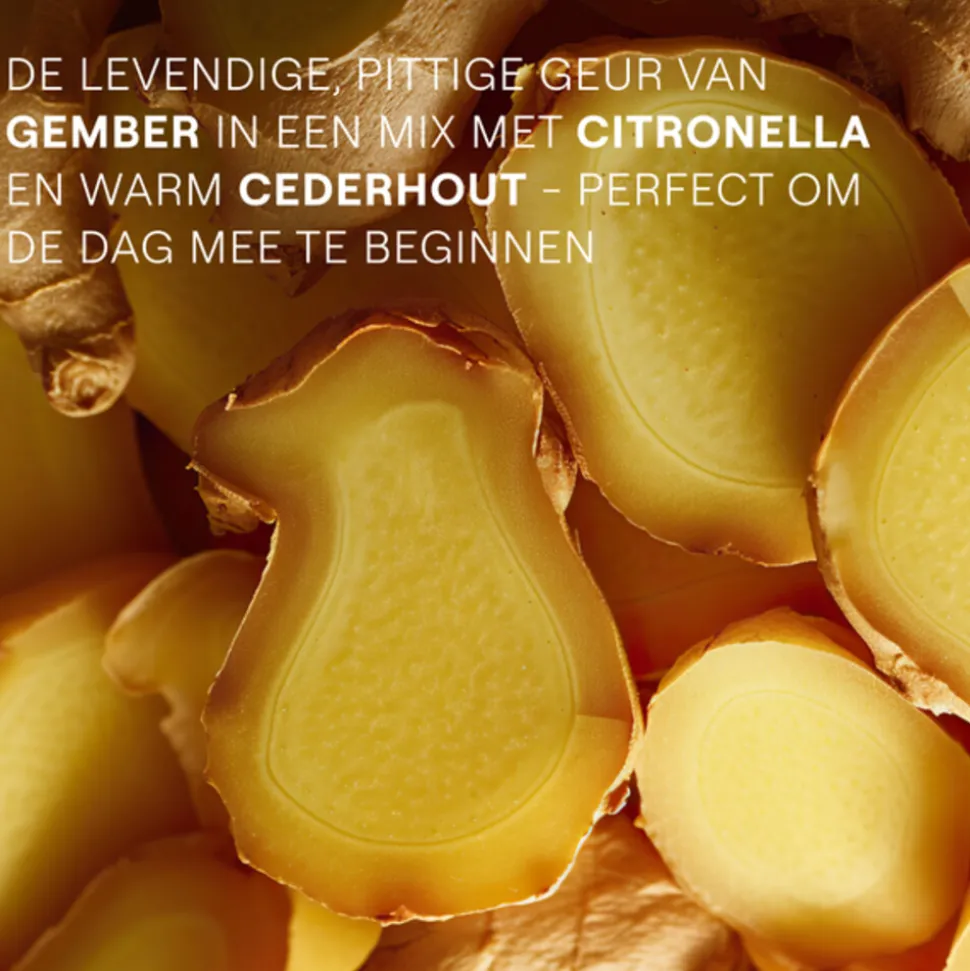 Energy Douchegel Gember met natuurlijke etherische oliën heeft een bewezen activerende werking op je gemoedstoestand en gevoel. Geef je energie een boost met de 100% natuurlijke geur van gember, citronella en cederhout. Energy Douchegel Gember is 100% natuurlijk, alle ingrediënten komen rechtstreeks uit de natuur. Deze milde douchegel is op basis van 100% plantaardige stoffen die de huid zacht reinigen en niet uitdrogen. Na het douchen voelt je huid aangenaam en soepel aan.