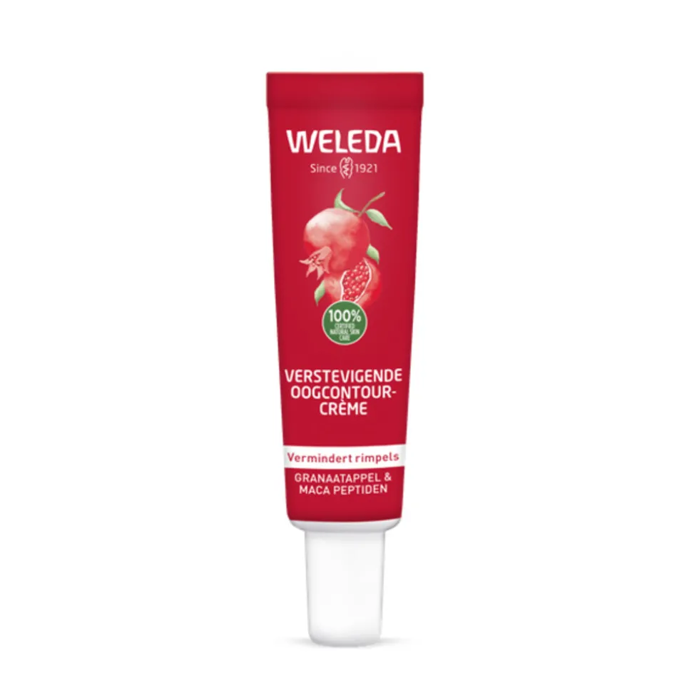 Weleda Verstevigende Oogcontourcrème is 100% natuurlijke verstevigende verzorging voor de huid rond de ogen. De kalmerende en verkwikkende formule is zeer verdraagzaam voor de kwetsbare huid. Granaatappelpitolie, peptiden van macawortel en extract van olijfblad hydrateren de huid en verbeteren de elasticiteit. Met als resultaat de vermindering van rimpels, donkere kringen en wallen.