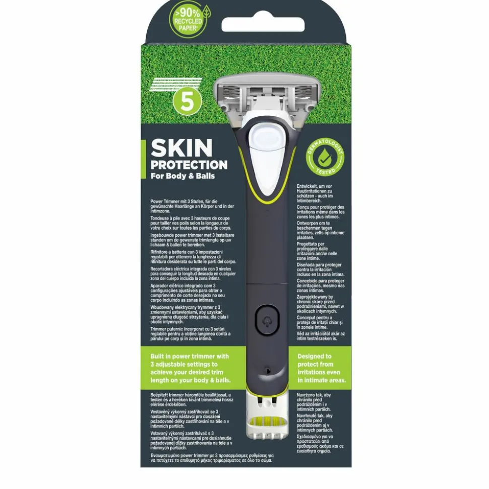 Wilkinson Sword Hydro Trimmer for Body & Balls is het mannen scheersysteem met trimmer welke beschikt over 3 instelbare trim lengtes voor het lichaam en de intieme zone. Wilkinson Sword Hydro Trimmer for Body & Balls is het mannen scheersysteem met trimmer welke beschikt over 3 instelbare trim lengtes voor het lichaam en de intieme zone. Het 2-in-1 scheersysteem met trimmer is geschikt voor de moeilijk bereikbare plekjes. De gelreservoirs met aloë vera en 5 mesjes op de scheerkop beschermen je huid tegen irritatie. Alle Hydro scheermesjes passen op alle Hydro scheersystemen. Deze verpakking bevat 1 scheersysteem met trimmer inclusief batterij en navulmesje.