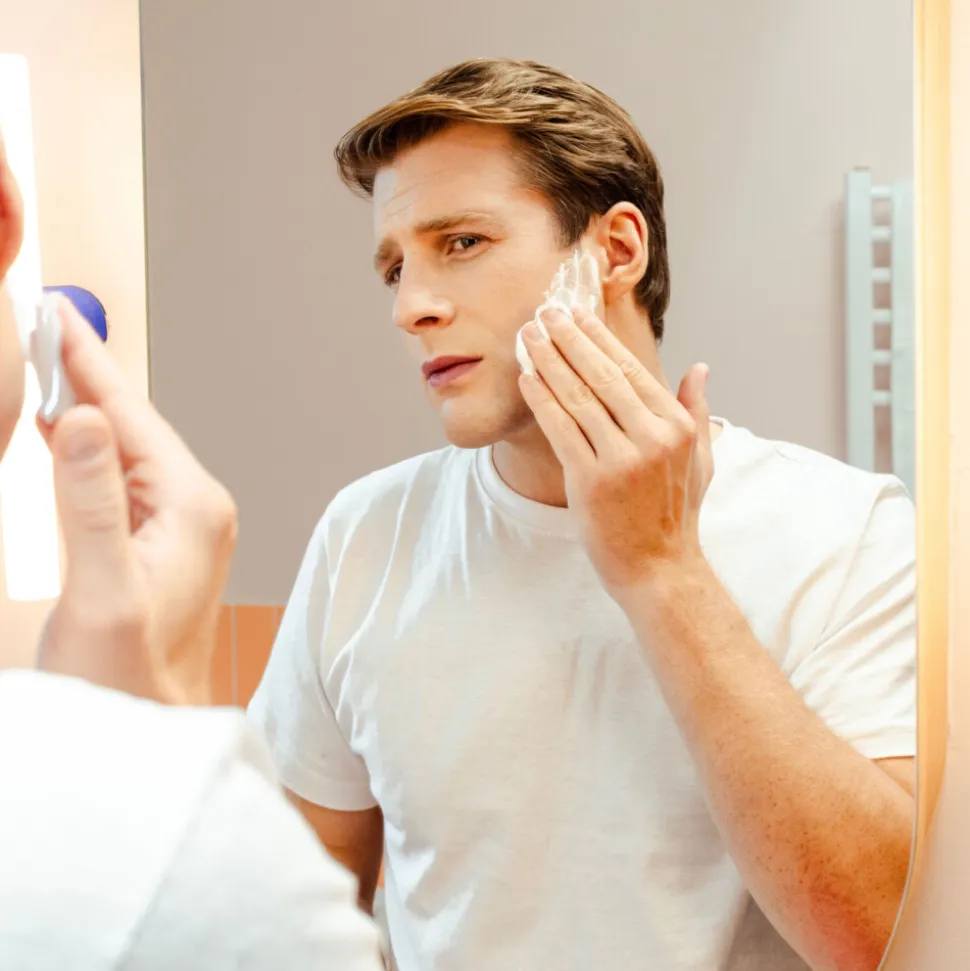 Breng gelijkmatig aan op een vochtig gezicht. Na het scheren grondig afspoelen.