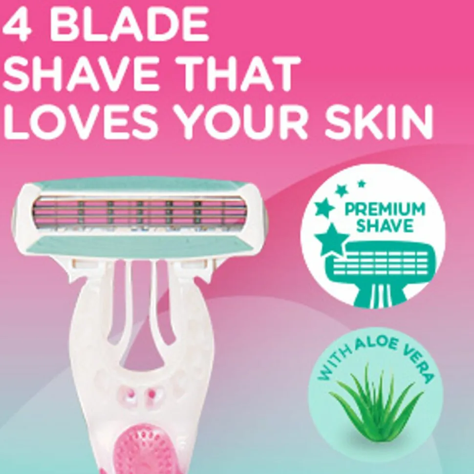 - De 2 geïntegreerde actiefstrips met Aloë Vera laten het scheermesje zachtjes over de huid glijden.