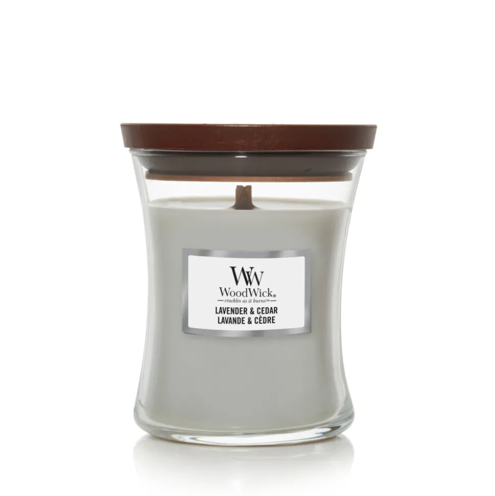 De WoodWick Geurkaars Medium Lavender & Cedar is een heerlijke geurkaars die zorgt voor een ontspannen sfeer in huis. De combinatie van lavendel en cederhout zorgt voor een rustgevende en warme geurervaring. De kaars is gemaakt van hoogwaardige sojawas en heeft een houten lont, waardoor de kaars een knisperend geluid maakt tijdens het branden. De geurkaars heeft een brandtijd van ongeveer 60 uur en wordt geleverd in een stijlvol glazen potje met houten deksel.