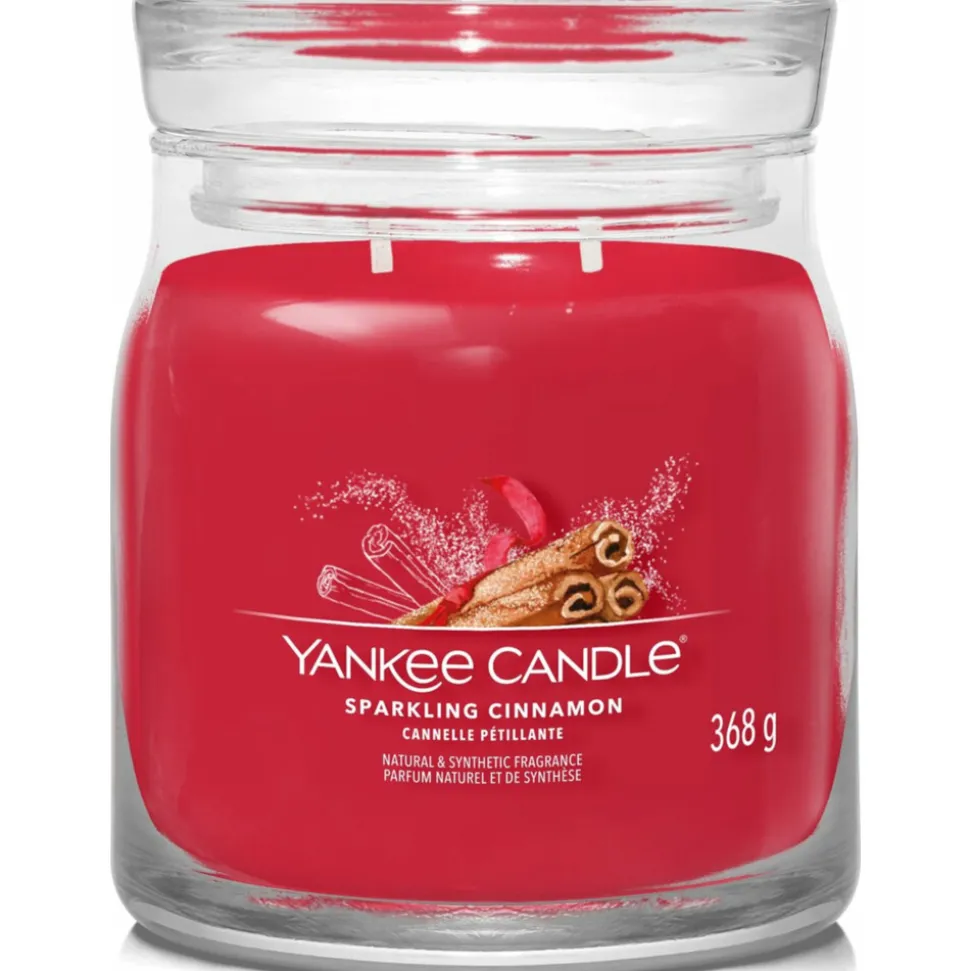 Met tot wel 50 uur brandplezier is de Signature Medium Jar van Yankee Candle ideaal voor lang gebruik en de absolute bestseller! Haal de warmte en gezelligheid in huis met deze Kruidige geur met kaneelstokjes en een vleugje kruidnagel. Yankee Candle Sparkling Cinnamon is een Zoete en kruidige geur met in de top- en middennoten Kaneelkruiden. Kruidnagel en Kardemom. Laurierblad en Cederhout vind je terug in de Basisnoot.