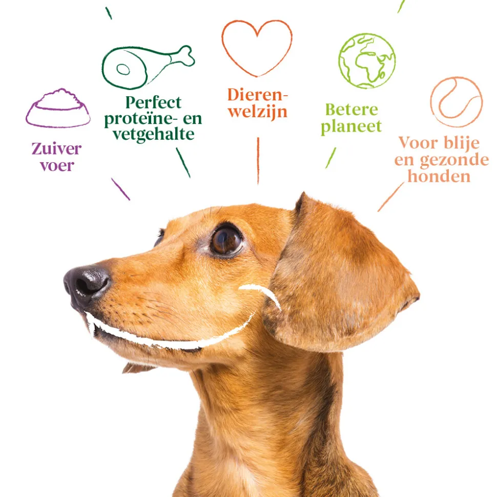 Een handig pakket voor je hond met 6 kuipjes graanvrije paté met kip en kalkoen. Voor alle honden, van puppy’s tot senior honden. Het biologische natvoer vormt een complete, voedzame en zeer smakelijke maaltijd voor je hond. Zuiver biologisch voer en dus zonder chemische geur-, kleur- en smaakstoffen, pesticiden en GMO, waarbij de best opneembare eiwitten zijn geselecteerd. Zo krijgt je hond precies binnen wat hij nodig heeft.