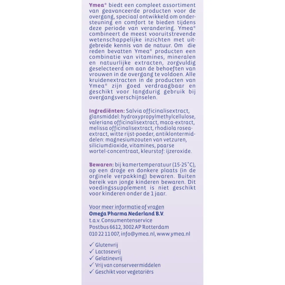 Ymea Dag & Nacht ondersteunt vrouwen op twee manieren tijdens de overgang. De dagcapsule helpt bij opvliegers, wisselende stemmingen en vermoeidheid. De nachtcapsule met Valeriaan en Citroenmelisse helpt om lekker te slapen en om ’s ochtends uitgerust wakker te worden.