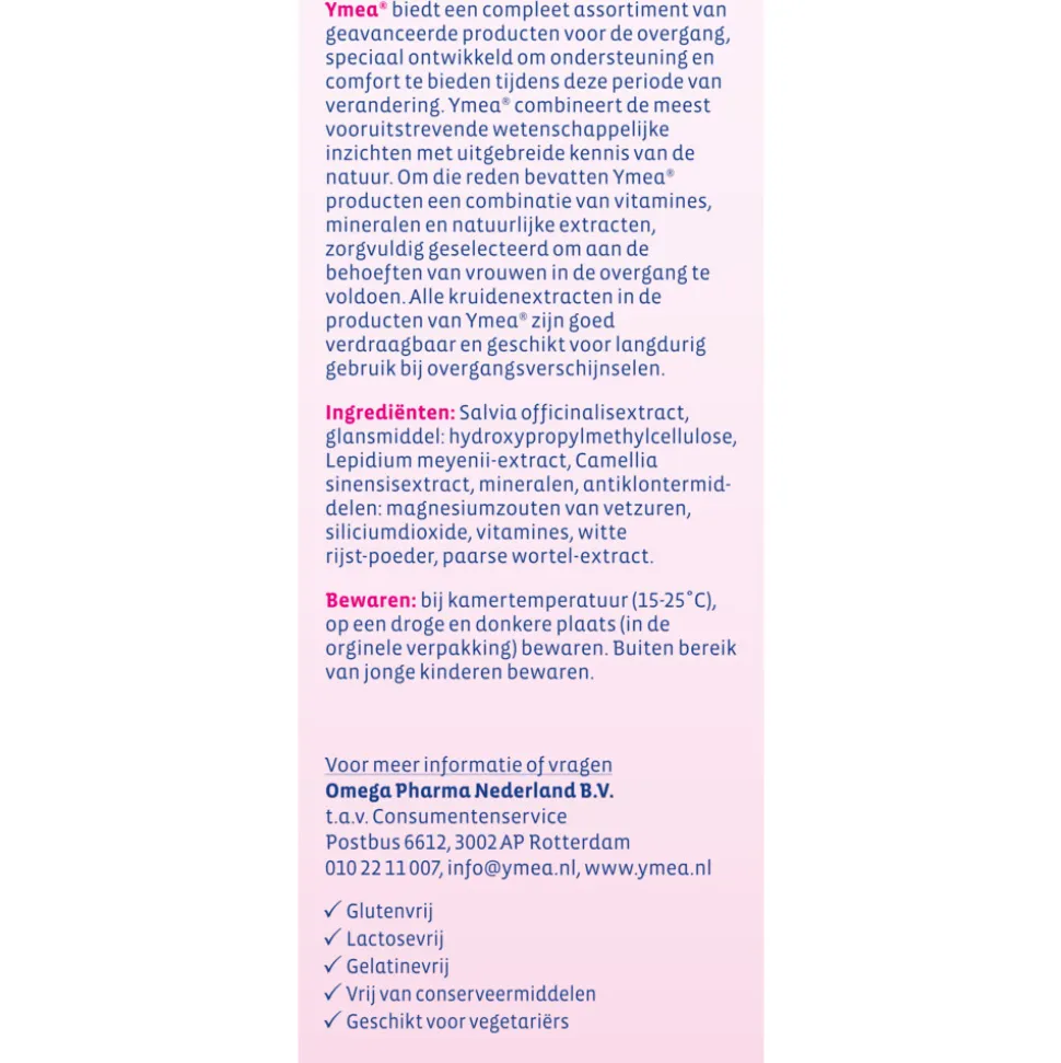 Gezonde levensstijl met Ymea Een gezonde levensstijl is belangrijk, evenals een gevarieerde, evenwichtige voeding, waarvoor voedingssupplementen geen vervanging zijn. Aanbevolen dosering niet overschrijden. Buiten bereik van jonge kinderen bewaren.