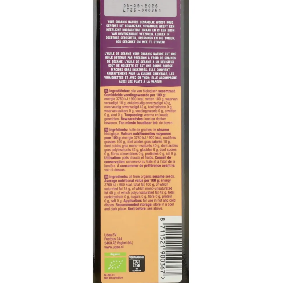 Your Organic Nature Sesamolie wordt koud gepertst uit Mexicaans sesamzaad. Sesamolie heeft een heerlijke, noogachtige smaak en is een bron van onverzadigde vetzuren.