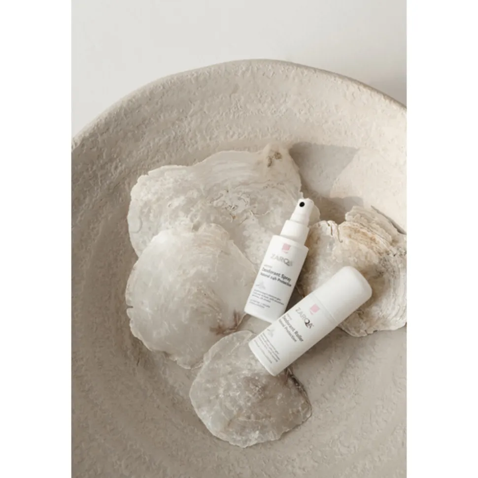 Zarqa Deodorant Spray geeft een optimale 24-uurs bescherming. De natuurlijke zilvermoleculen werken actief tegen geur veroorzakende bacteriën. Het huideigen Glycerine, dode zee mineralen en ZincPCA zorgen voor een gehydrateerde en zachte huid. Bevat geen parfum, alcohol en aluminium chloorhydrate. De 100% natuurlijke deodorant is geschikt voor de (zeer) gevoelige huid, zelfs na het ontharen. Laat geen witte strepen achter.